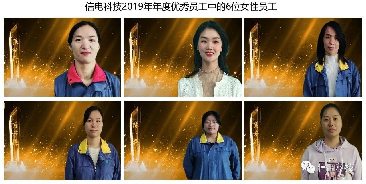 在被評為(wèi)信電(diàn)科(kē)技(jì)2019年(nián)年(nián)度1 ↓®0位優秀員(yuán)工(gōng)中,女(nǚ)性員(yuán)工(gōng)占了(le)6位♠←≠,她(tā)們分(fēn)别是(shì):≈♣♠"張秋梅(财務部)、謝(xiè)丹(市(shì)場(chǎng)部)、梁詩儀(生(shēng)産部)≥®Ω←、肖芳豔(生(shēng)産部)、陳秋(品質Ω¥部)和(hé)吳芳麗(lì)(倉庫)。